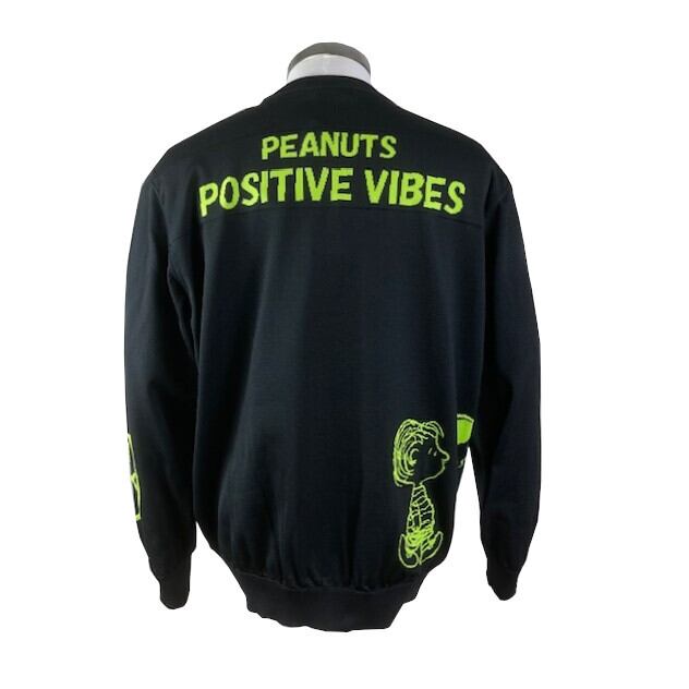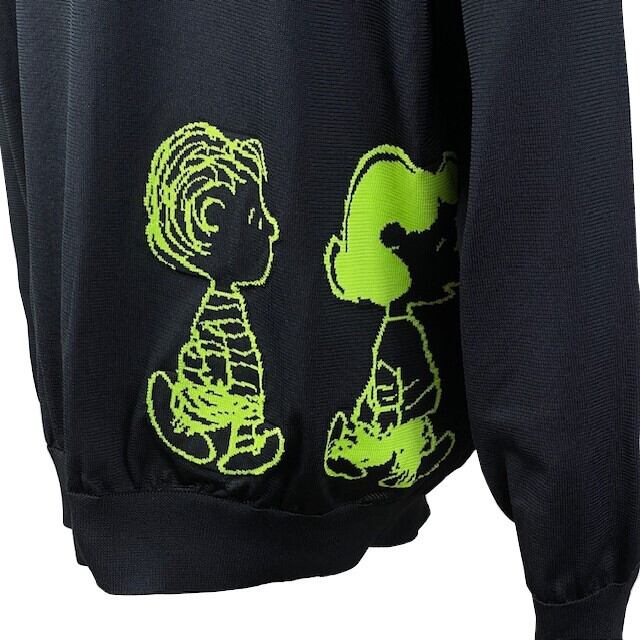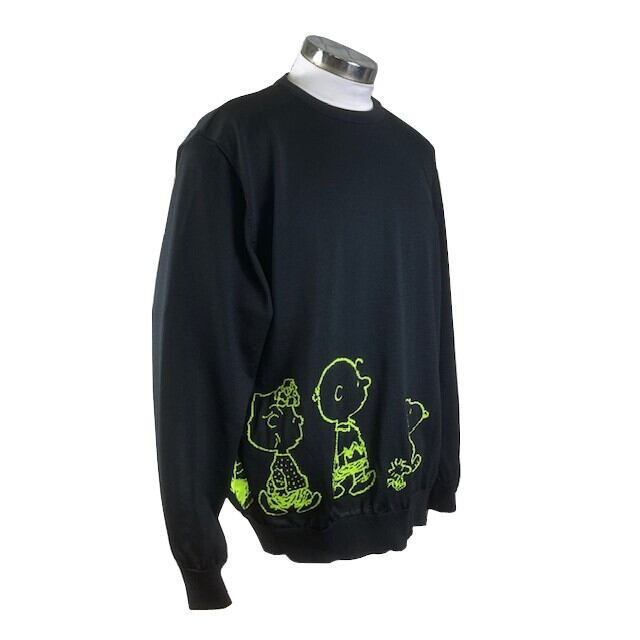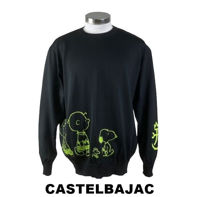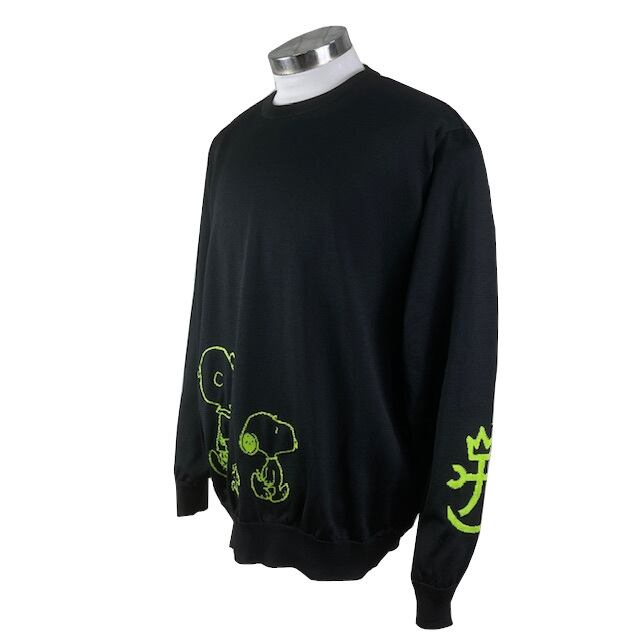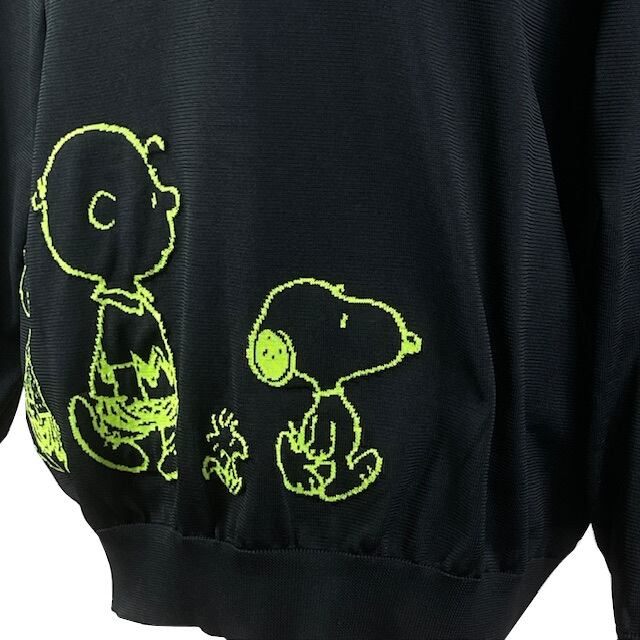みんな大好きSNOOPYと仲間たちがジャガードで表現されたポリエステル糸のクルーセーター。ポリエステル糸なので軽くて伸びも良く、着ていてノンストレスです。背中に入ったロゴもポイントです。春先、秋口に活躍間違い無し!