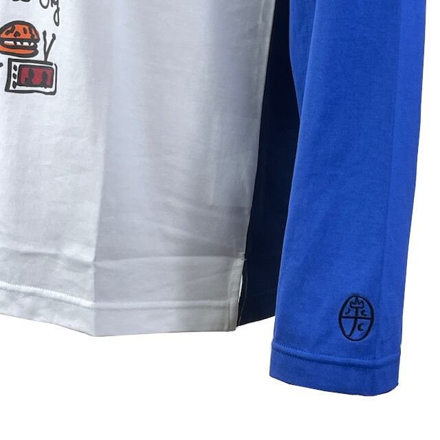 カステルバジャック氏による独特なオリジナルアート柄の復刻プリントと両袖の切り替えが特徴のロングTシャツです。