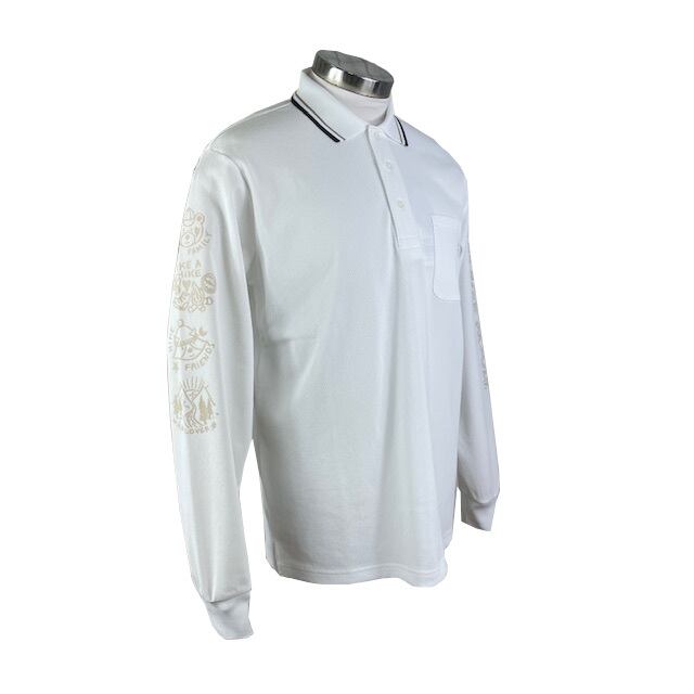 サラッとマットな質感で、生地表面のポコポコとした凹凸が特徴の長袖ポロシャツ。