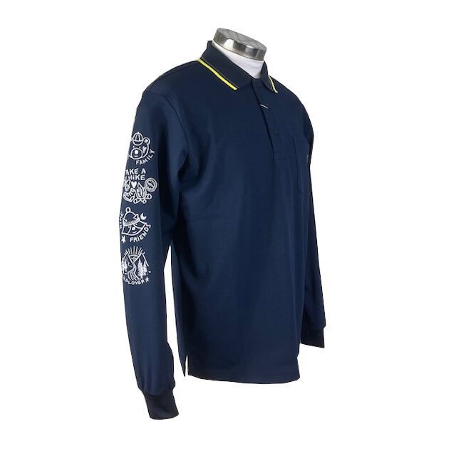 サラッとマットな質感で、生地表面のポコポコとした凹凸が特徴の長袖ポロシャツ。