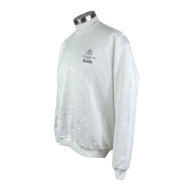 全体エンボスロゴ加工が施されたカステルバジャックのクルーネックトレーナー!