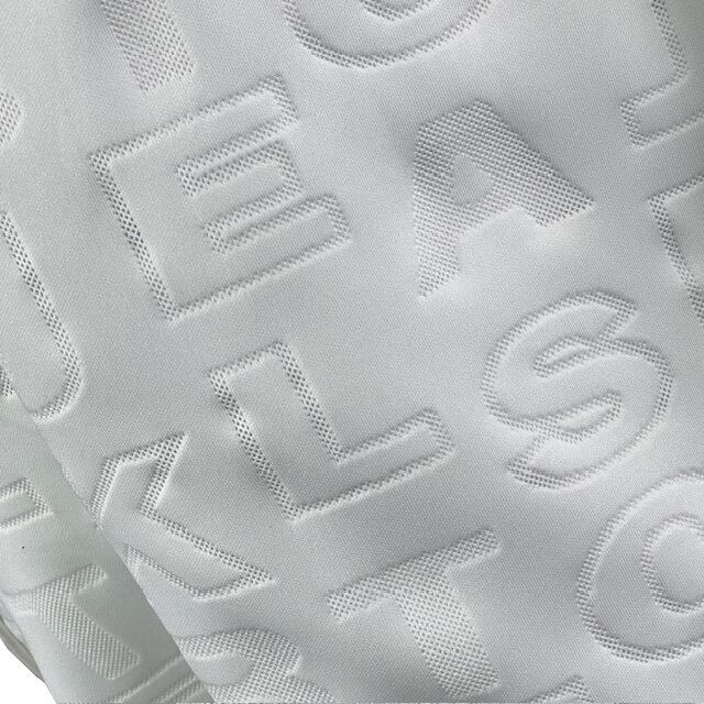 高周波エンボス加工のロゴが全体に施されており、シンプルながらも存在感があります。