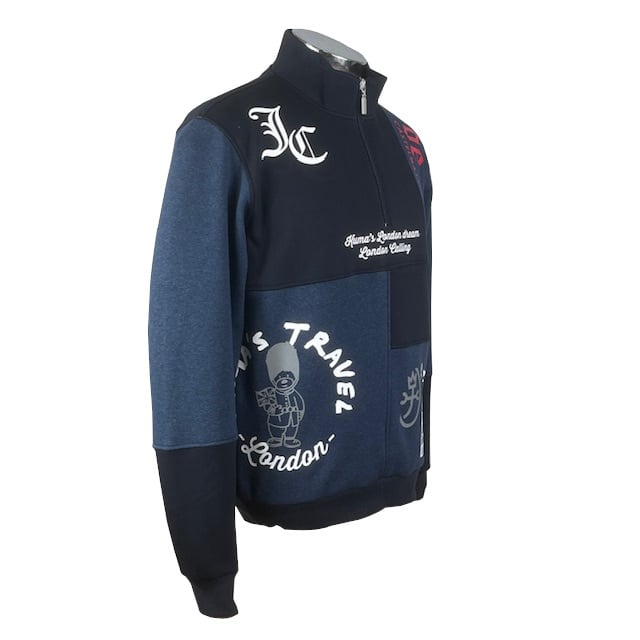 お洒落な切り替えハーフジップトレーナー。
