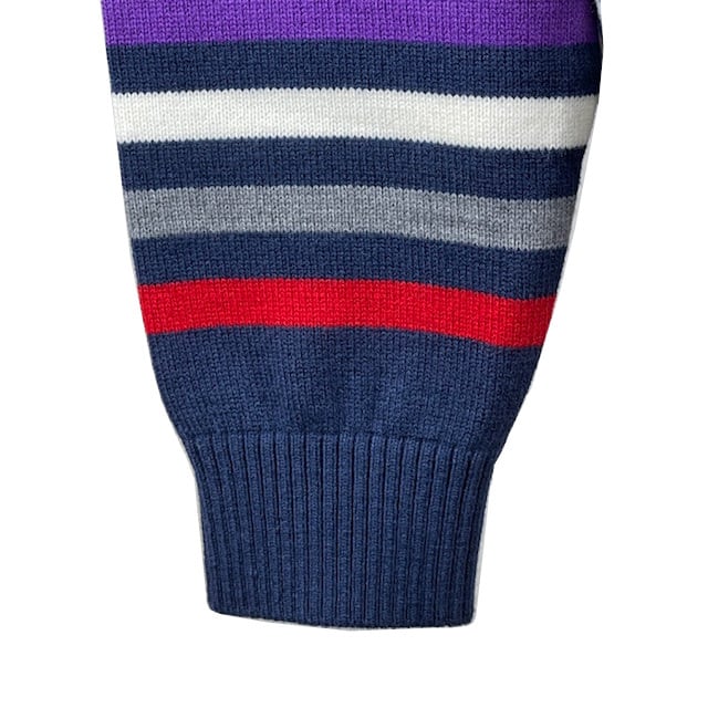 カラフルなデザインが印象的で、ロゴ織りがブランドの魅力を引き立てます。さまざまなスタイルに合わせやすく、冬のコーディネートに欠かせない一枚となるでしょう。