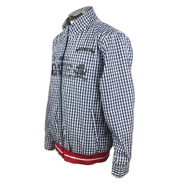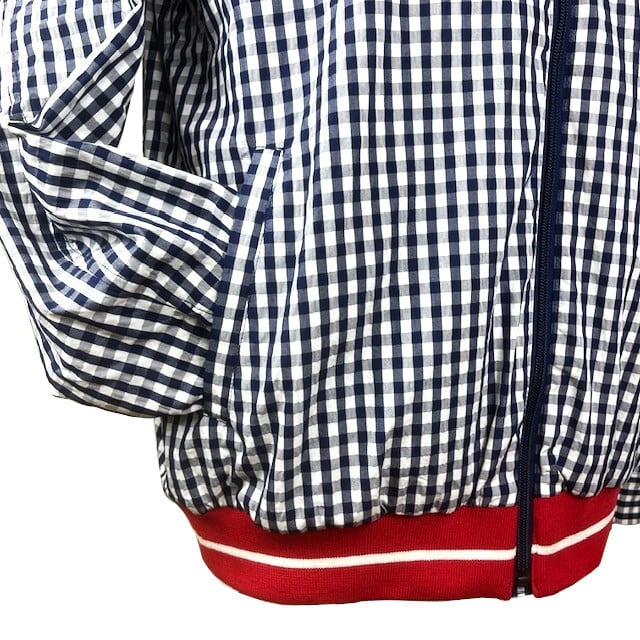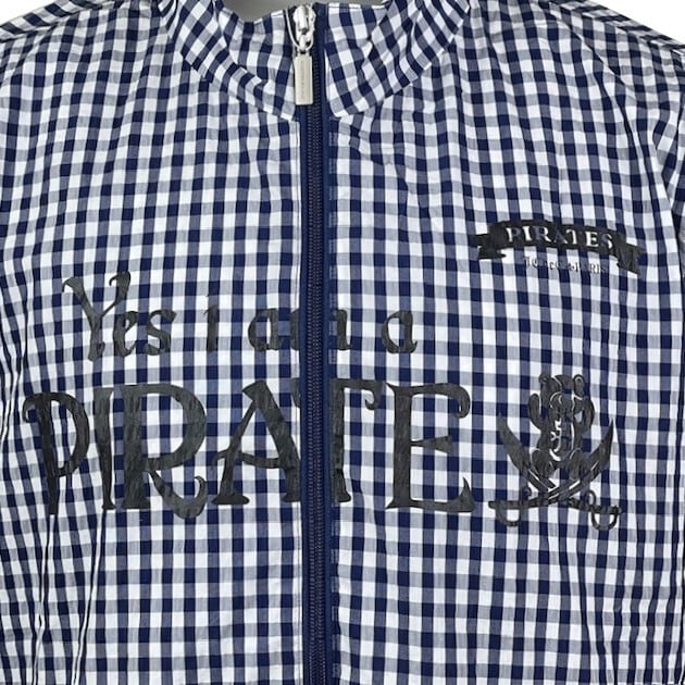 海賊モチーフプリントがアクセントになったギンガムチェック柄スプリングブルゾン。