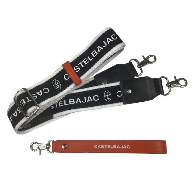 シボ感ある合成皮革にCASTELBAJACオリジナルのモノグラムをプリントした2WAYサコッシュ。