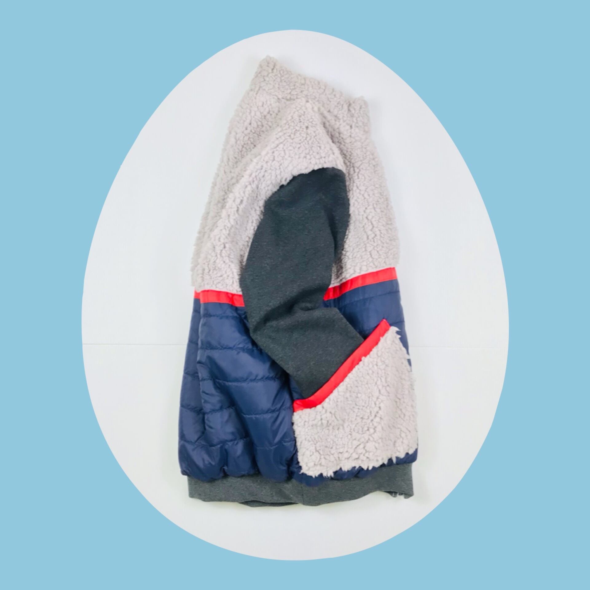 身頃はボア使いと中綿入り部の切り替え、袖は裏起毛加工♪