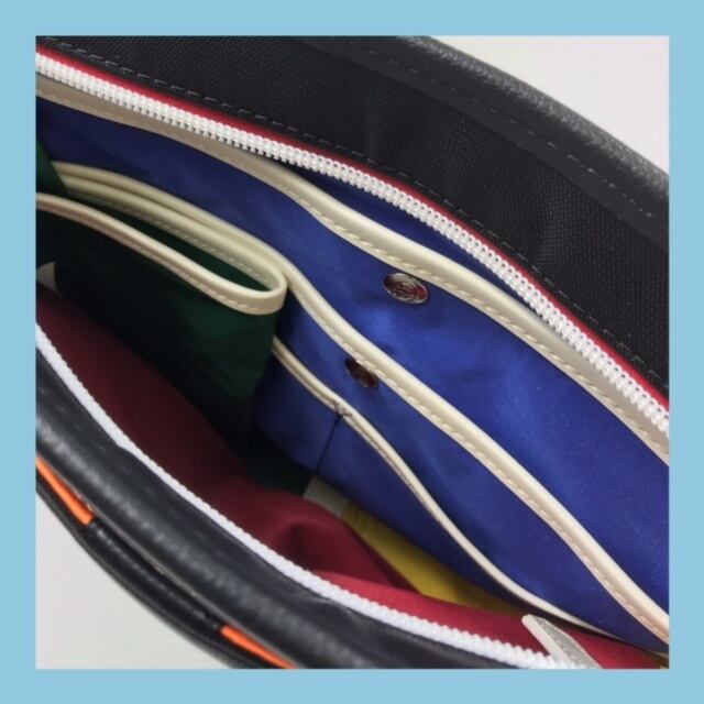 内側オープンポケット×4、ファスナーポケット×2、スナップボタン式ポケット×2、ペットボトルホルダー×1