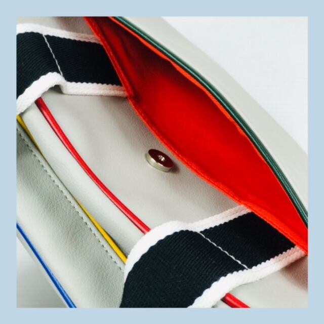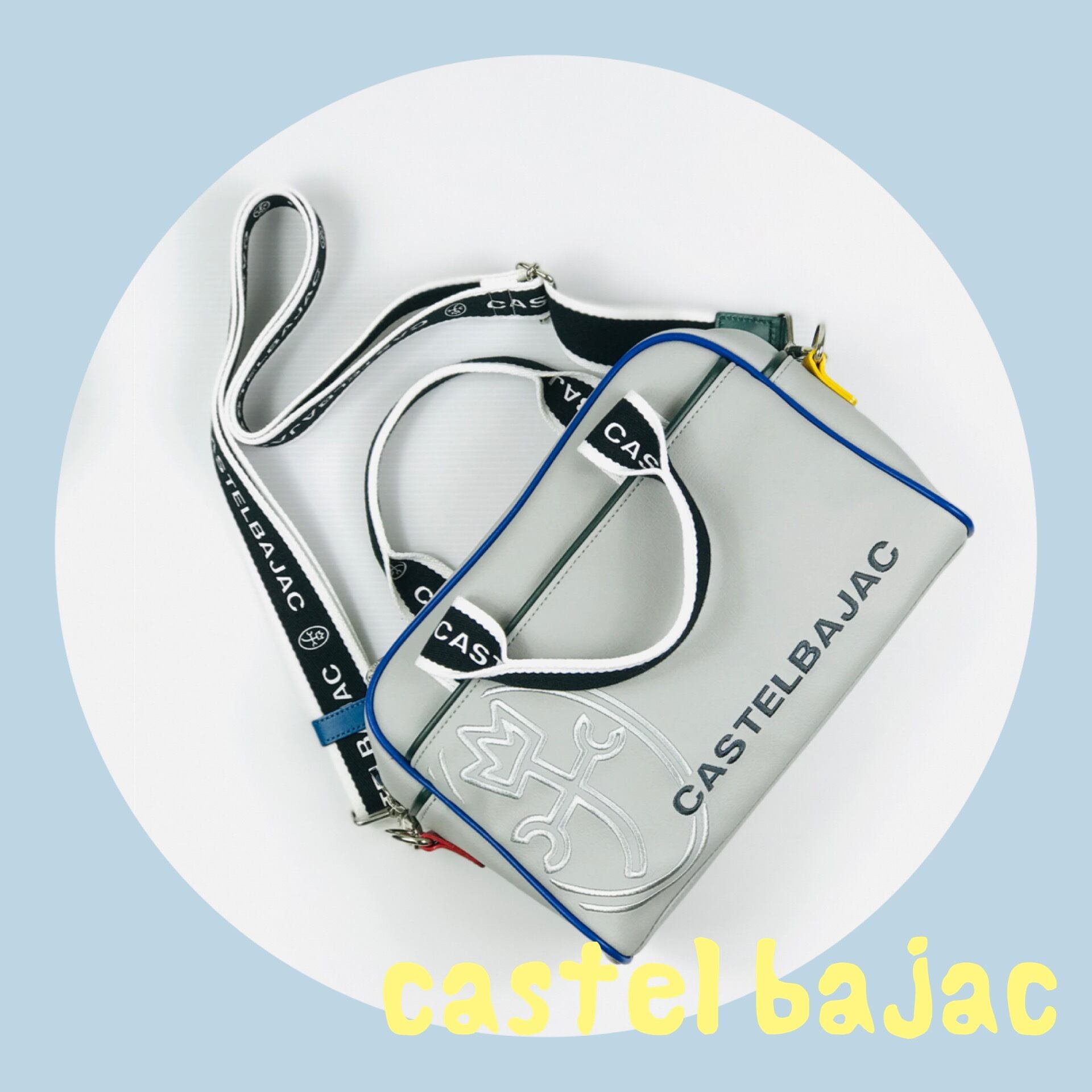 カステルバジャックのイメージカラーである4原色をヘリ玉に表現したカジュアルシリーズ。フロントの家紋とロゴ刺繍がアクセントに。素材には汚れがつきにくく、不着しても落とすのが簡単で傷なども付きにくい特徴がある合皮を使用。付属部分には牛革を使用しています。使い勝手も良く、カステルバジャックらしい遊び心あるデザインが魅力です。ショルダーバッグとしても使える便利な2WAY仕様。A5サイズ対応で財布や手帳、スマホ等のみでのちょっとしたお出掛けに便利なミニボストンバッグ。