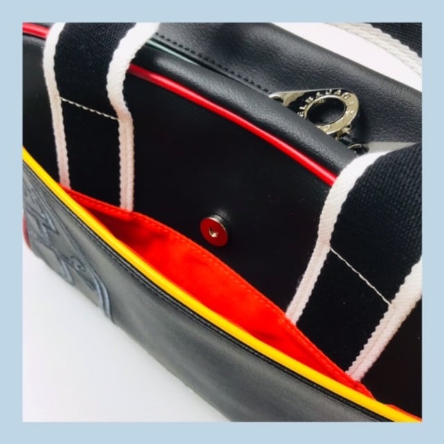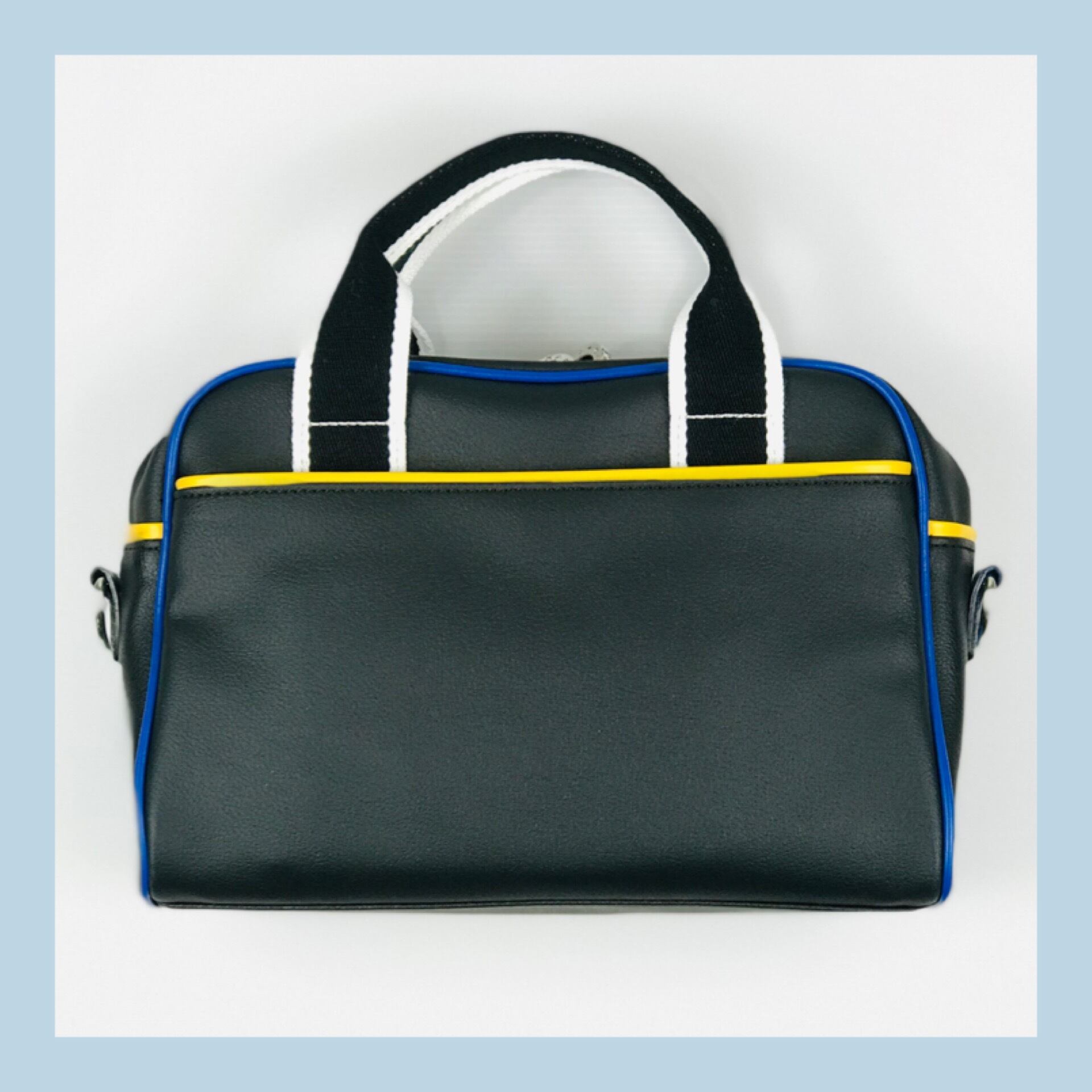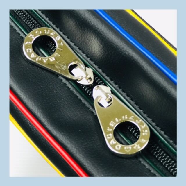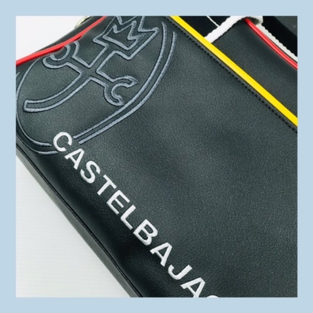 カステルバジャックのイメージカラーである4原色をヘリ玉に表現したカジュアルシリーズ。フロントの家紋とロゴ刺繍がアクセントに。素材には汚れがつきにくく、不着しても落とすのが簡単で傷なども付きにくい特徴がある合皮を使用。付属部分には牛革を使用しています。使い勝手も良く、カステルバジャックらしい遊び心あるデザインが魅力です。ショルダーバッグとしても使える便利な2WAY仕様。A5サイズ対応で財布や手帳、スマホ等のみでのちょっとしたお出掛けに便利なミニボストンバッグ。