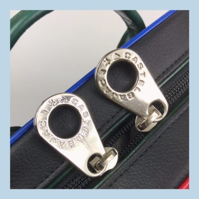 ■カステルバジャックのイメージカラーである4原色をヘリ玉に表現したカジュアルシリーズ。フロントの家紋とロゴ刺繍がアクセントに。素材には汚れがつきにくく、不着しても落とすのが簡単で傷なども付きにくい特徴がある合皮を使用。付属部分には牛革を使用しています。使い勝手も良く、カステルバジャックらしい遊び心あるデザインが魅力です。A5サイズで財布や手帳、スマホ等のみでのちょっとしたお出掛けに便利なミニショルダーバッグ。