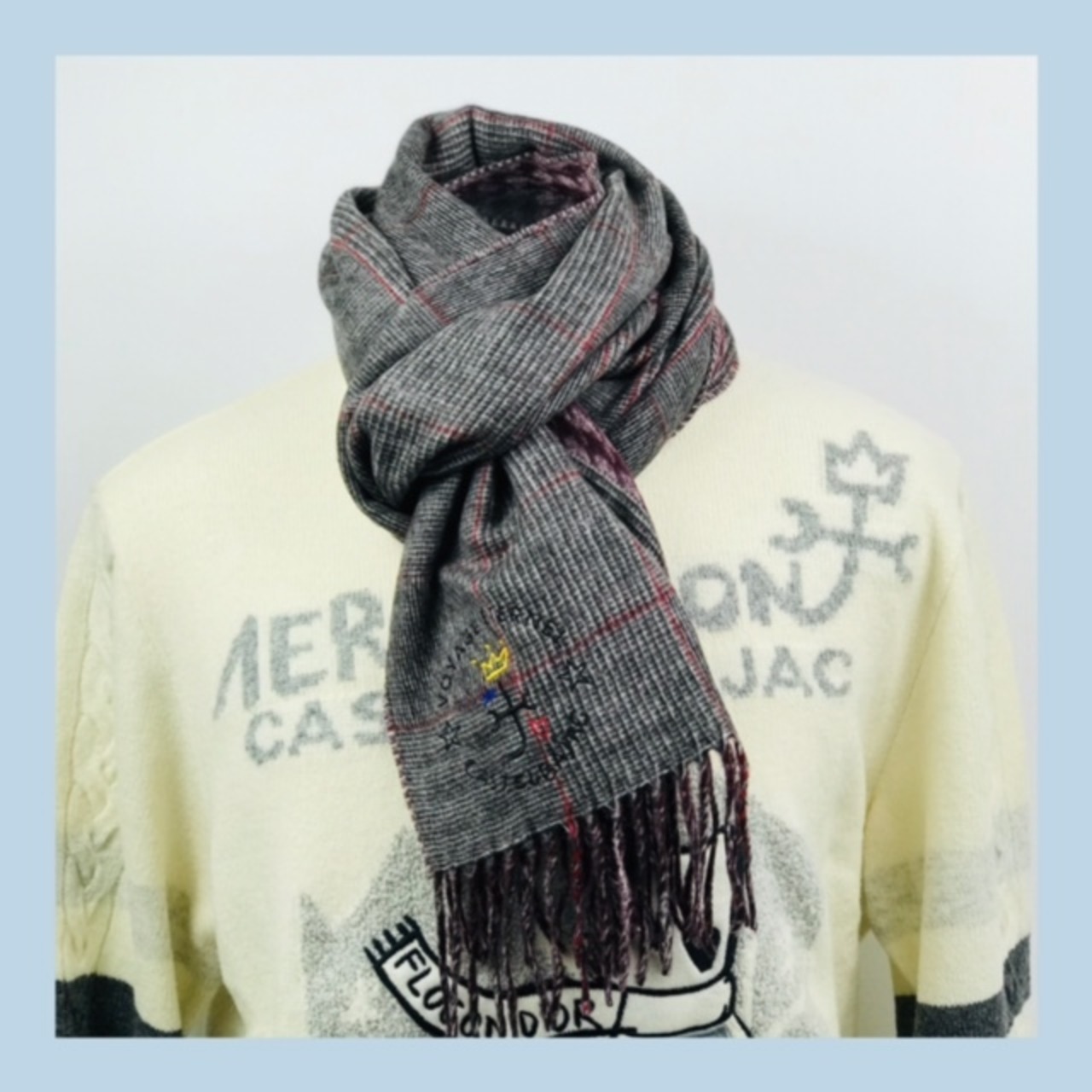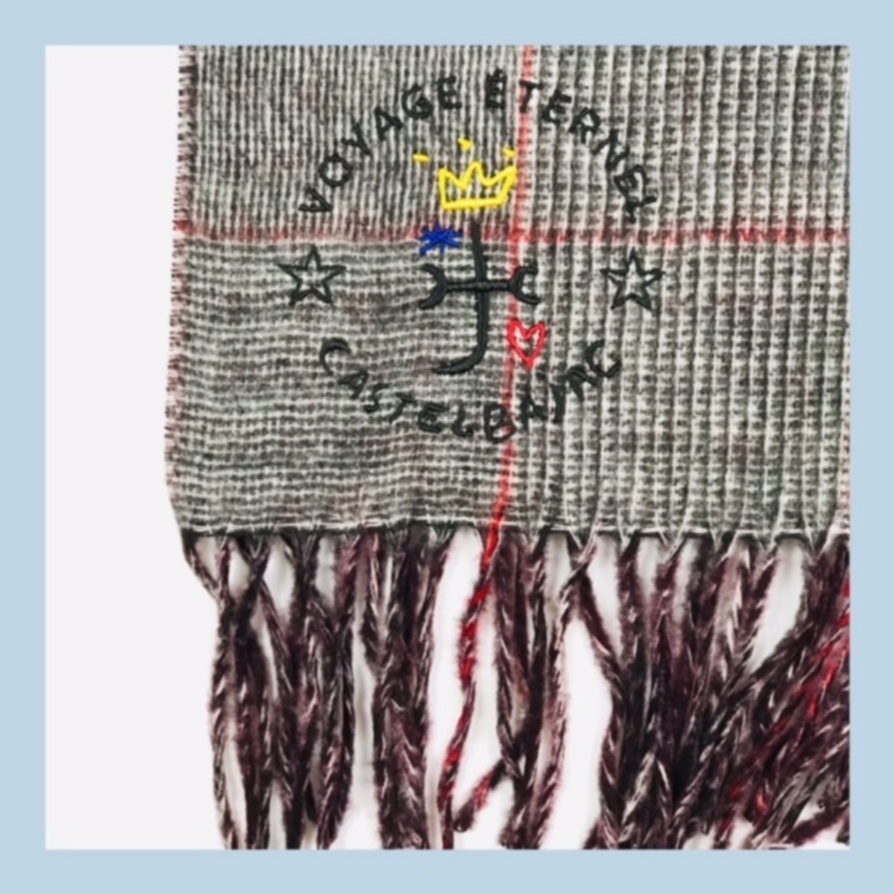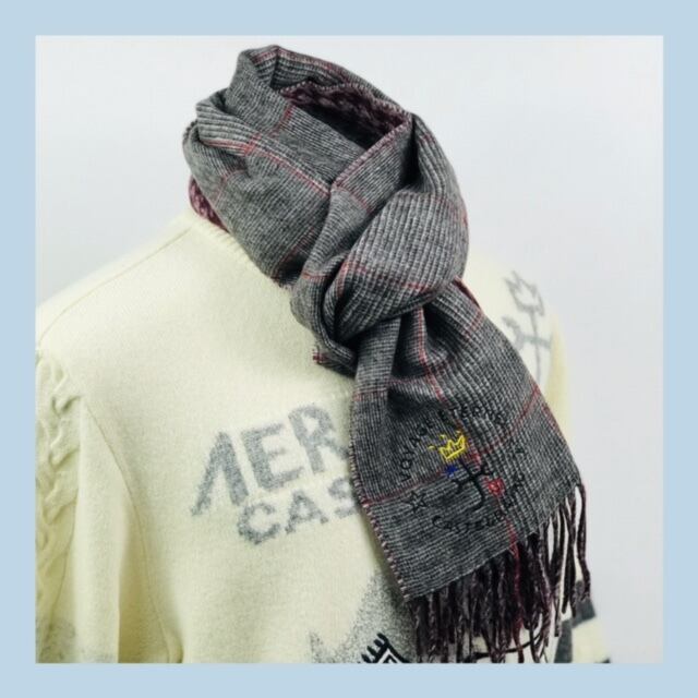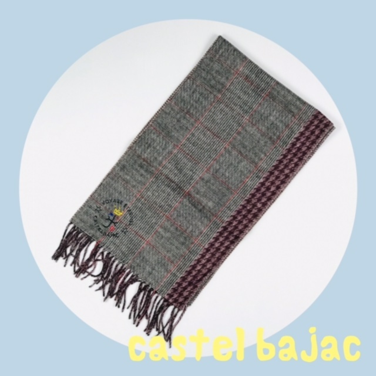 グレンチェック×千鳥格子柄で切替られたカステルバジャック(CASTELBAJAC)マフラー。