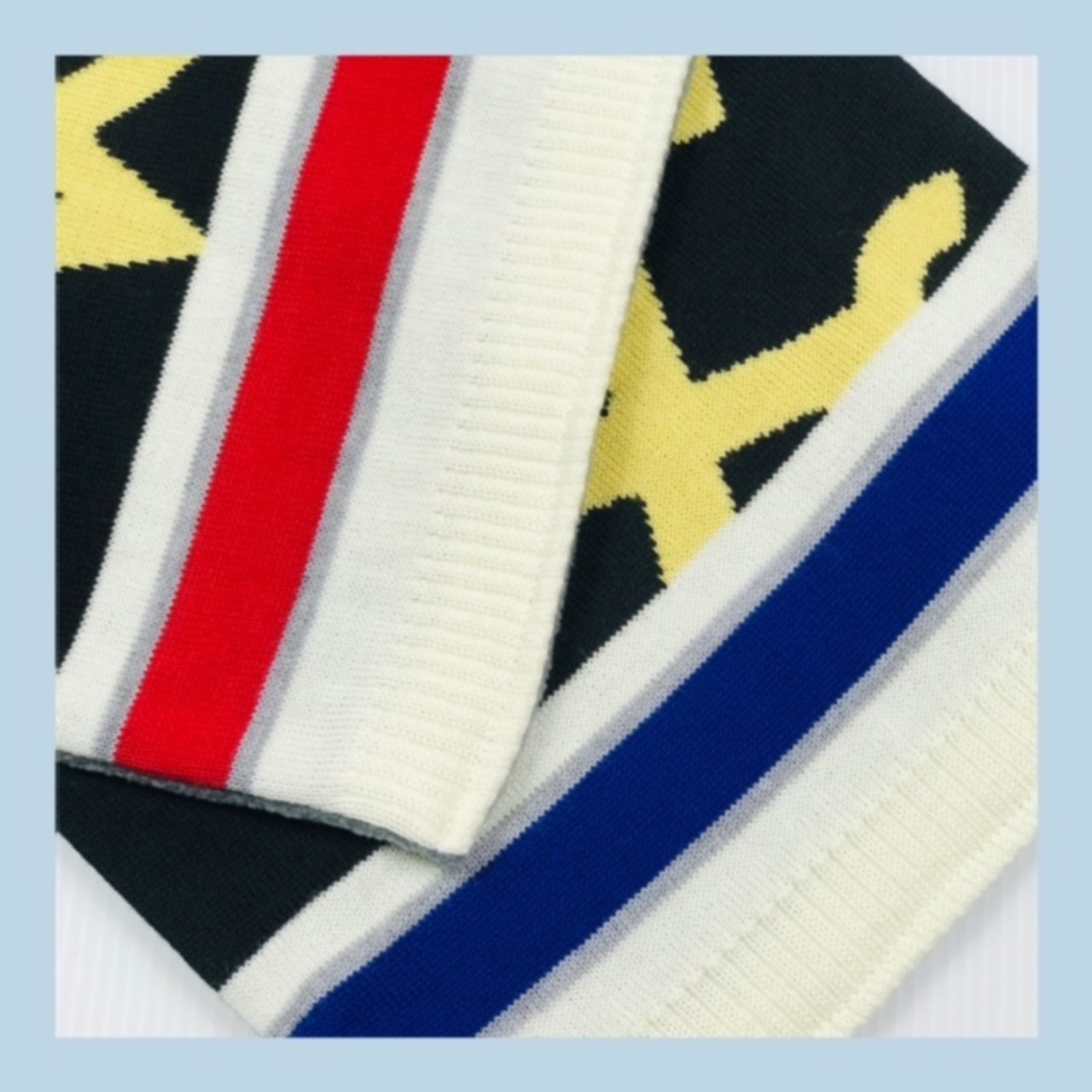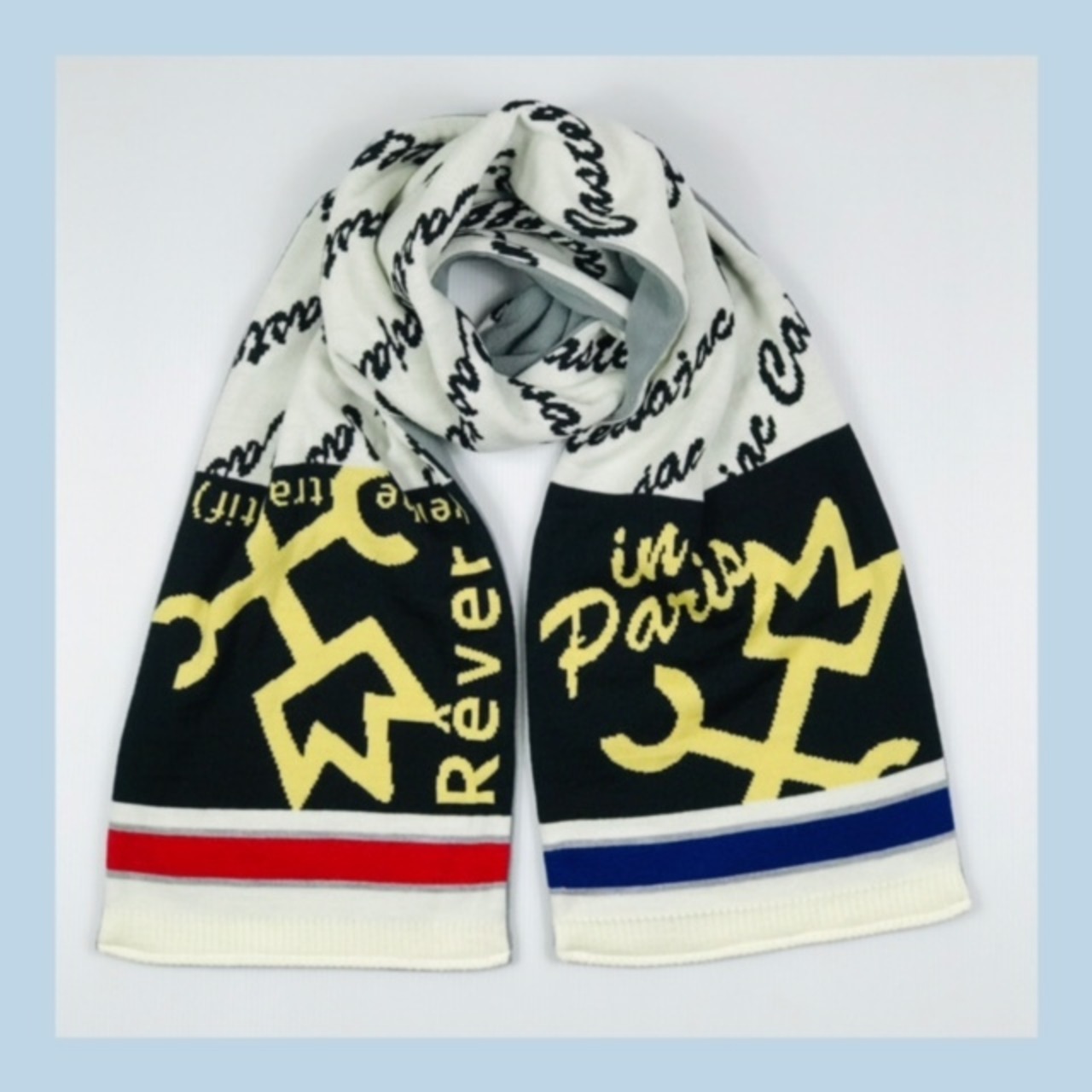 両端のビッグロゴがポイントのカステルバジャック(CASTELBAJAC)マフラー。
