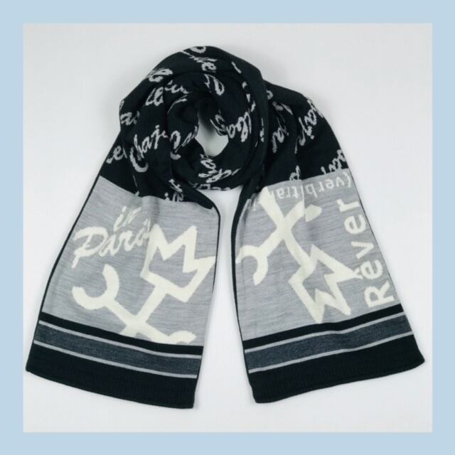 両端のビッグロゴがポイントのカステルバジャック(CASTELBAJAC)マフラー。