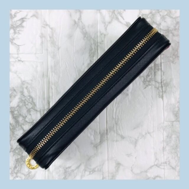カステルバジャックの6色のイメージカラーを飾りステッチと手かがりステッチで表現した小物シリーズ。本体素材にはサフィアーノ調のエンボスを施した牛革を使用。アイロン加工で凸凹部分にナチュラルなツヤを出して質感を高めています。光沢のあるゴールドファスナーや金具、ネーム表現と裏地もゴールド色のサテン生地を使用してユニセックス感覚に仕上がっています。