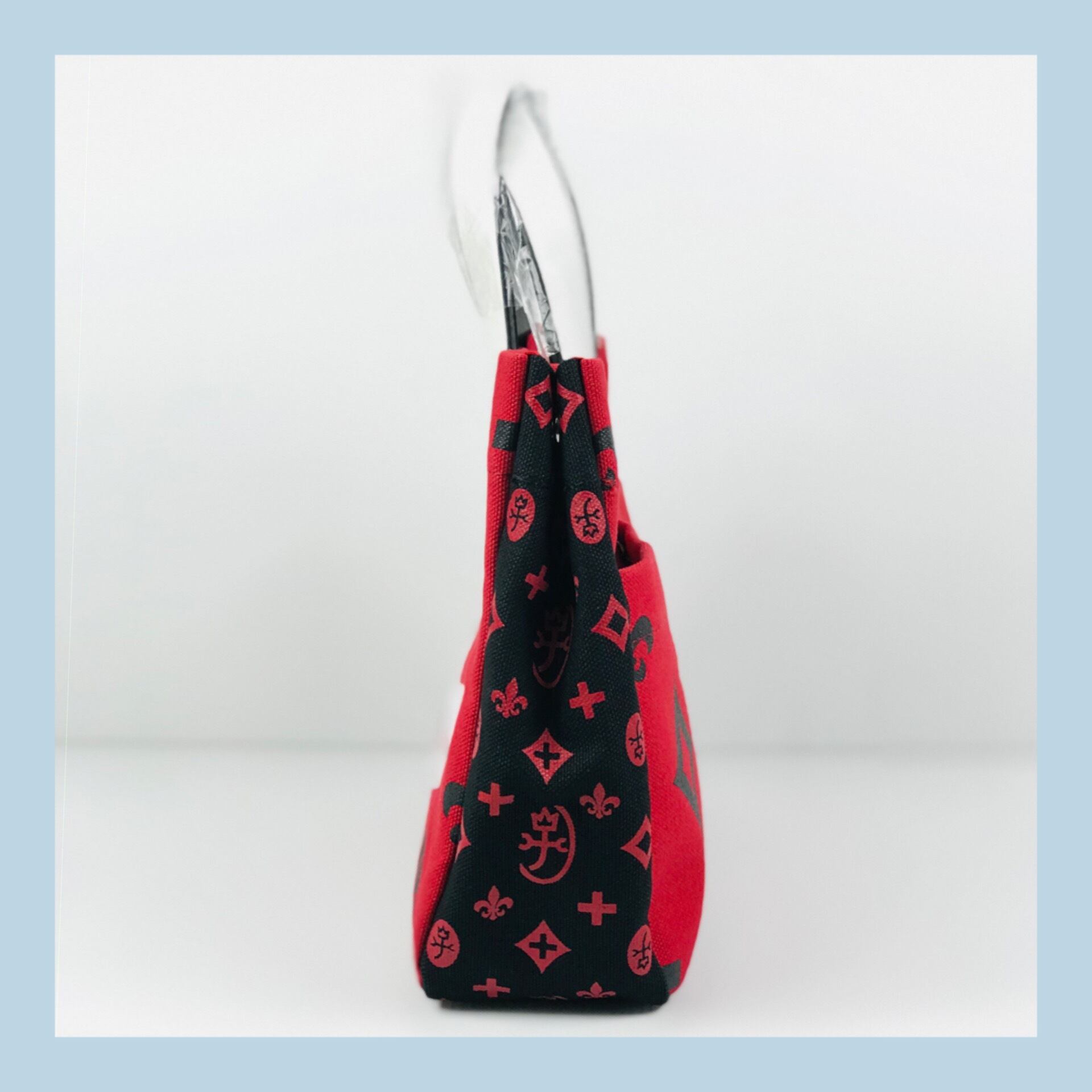 前面と横マチをサイズ違い、カラー違いのモノグラム柄に式替えたお洒落なデザイン!