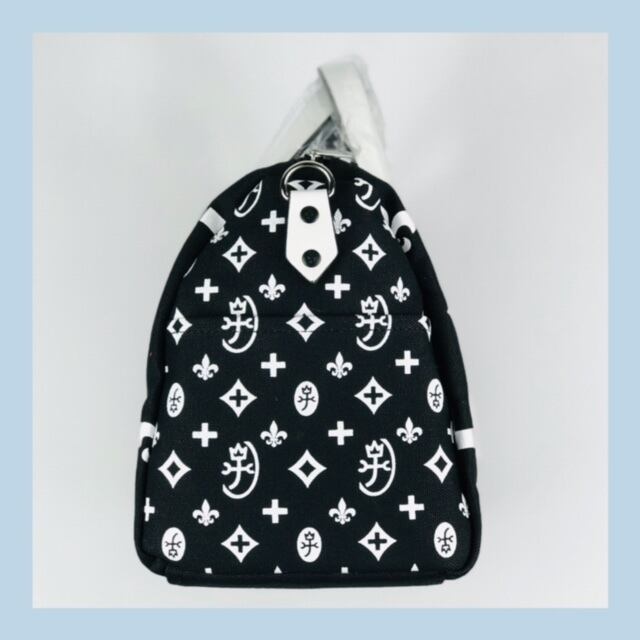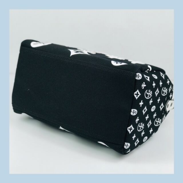前面と横マチをサイズ違い、カラー違いのモノグラム柄に式替えたお洒落なデザイン!