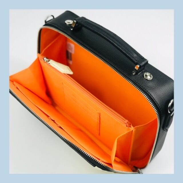 開閉はラウンドタイプなので大きく開き、コンパクトながら仕分けも行える内装で使い勝手の良い作り。手持ち、ショルダーバッグで使える便利な2WAY仕様。ショルダーベルトは金具が本体に当たらない様に工夫されています。ショルダーバッグとしても使える2WAY仕様。外側のカードポケットはICカードや定期の収納に便利。A5対応でipadも収納出来るサイズ。普段使いや旅行でのサブバッグにも使いやすいサイズ。