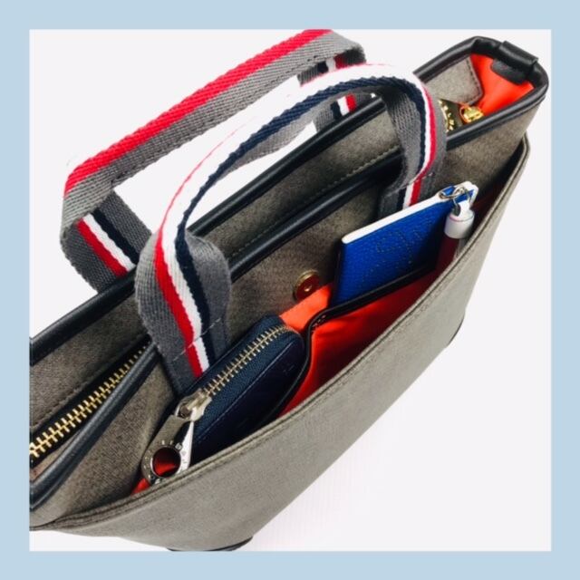 充実したポケットで、外出するときの小物もきれいに収まるミニトートバッグ。