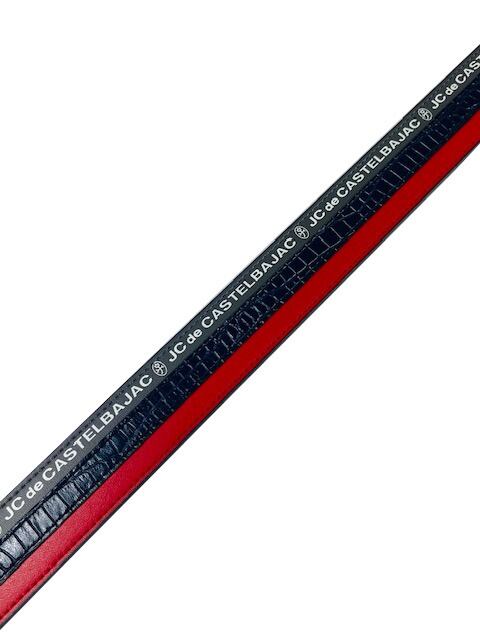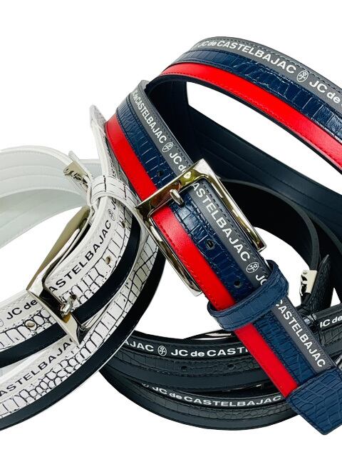 ロゴプリントを配したベースにクロコ型押しを重ねたカステルバジャック(CASTELBAJAC)のデザインベルト。