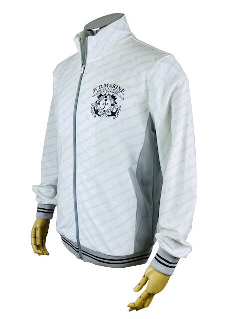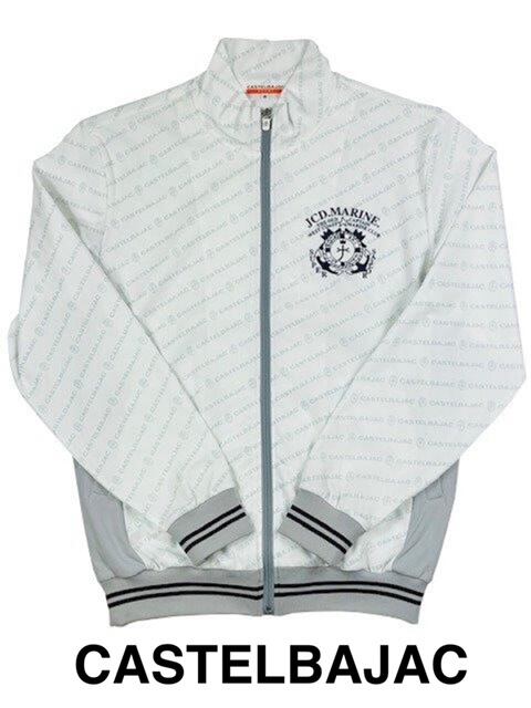 メッシュ素材を使用した、さらりとしたドライ感のある風合いが心地よいロゴ総柄カステルバジャック(CASTELBAJAC)ジップアップブルゾン。