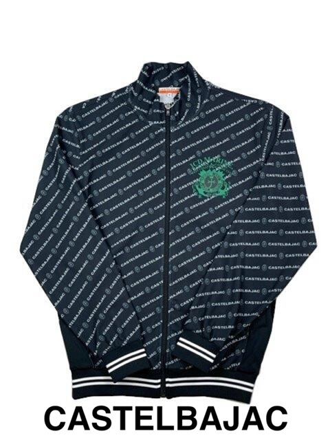 メッシュ素材を使用した、さらりとしたドライ感のある風合いが心地よいロゴ総柄カステルバジャック(CASTELBAJAC)ジップアップブルゾン。