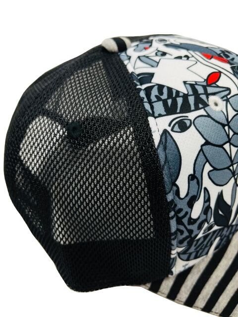 カラフルなサファリ柄転写プリント×ボーダー柄で切替られたカステルバジャック(CASTELBAJAC)メッシュキャップ。