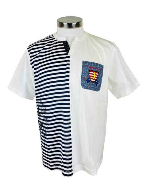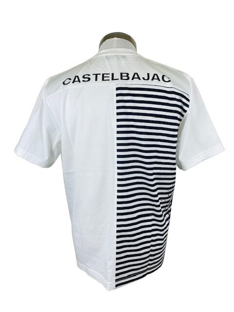 丸首の中心で小さくV字に開くスキッパー カラーがアクセントになったお洒落なデザインのカステルバジャック(CASTELBAJAC)半袖Tシャツ。