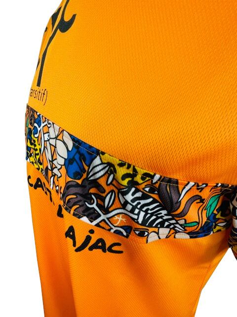 カラフルなジャングルモチーフ転写プリント切替がアクセントのカステルバジャック(CASTELBAJAC)半袖Tシャツ。