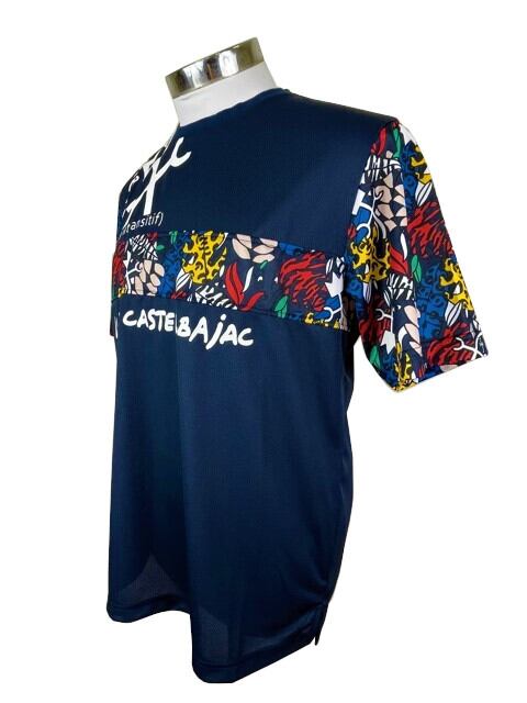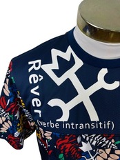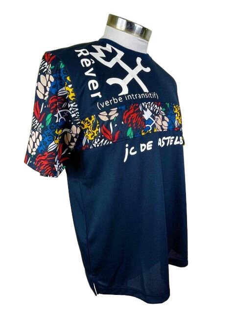 カラフルなジャングルモチーフ転写プリント切替がアクセントのカステルバジャック(CASTELBAJAC)半袖Tシャツ。