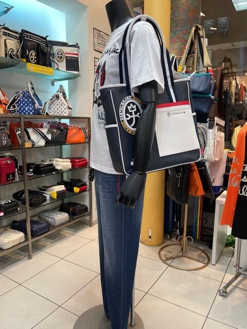 本体素材はナチュラルシボの型押しを施したソフト合皮を使用。ロゴはカラフルかつ大きく厚みを持たせる事でカジュアルテイストの中にグレードの高さを感じられる仕上がりになっています。アシンメトリーに配したポケットもとても使いやすい仕様になっており、デザインと使いやすさを両立したアイテムです。仕分けも出来る機能的なポケットも配置です。