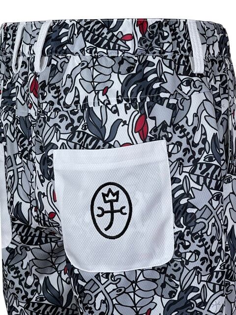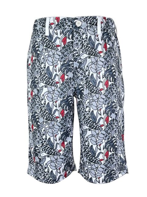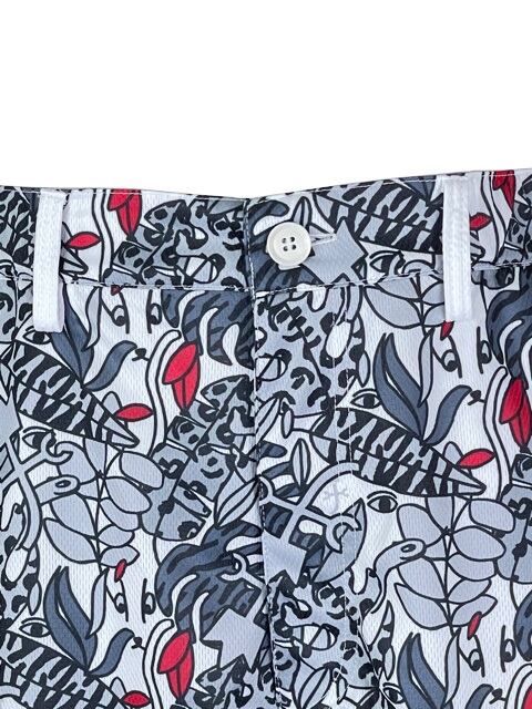 カラフルなジャングルモチーフ転写プリントがアクセントのカステルバジャック(CASTELBAJAC)ハーフパンツ。