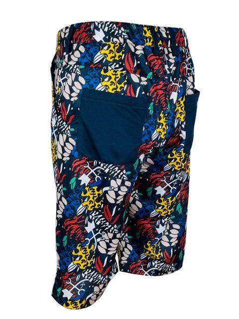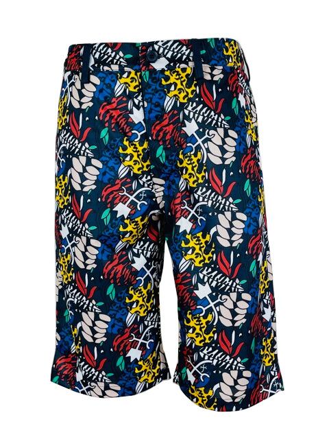 カラフルなジャングルモチーフ転写プリントがアクセントのカステルバジャック(CASTELBAJAC)ハーフパンツ。