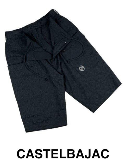 シアサッカー調の凹凸のある涼しげな風合いのカステルバジャック(CASTELBAJAC)ハーフパンツ。ドビー織が特徴のシャリ感のある生地は爽やかな肌触りで清涼感があります。