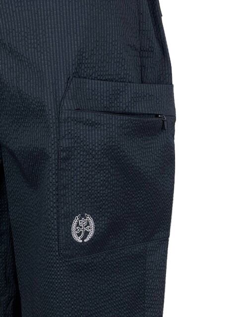 月桂樹のあしらわれたKAMONマーク刺繍やロゴ刺繍がアクセント。