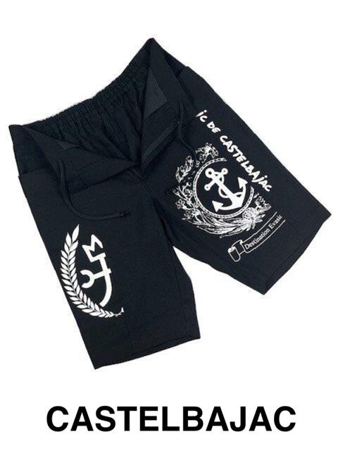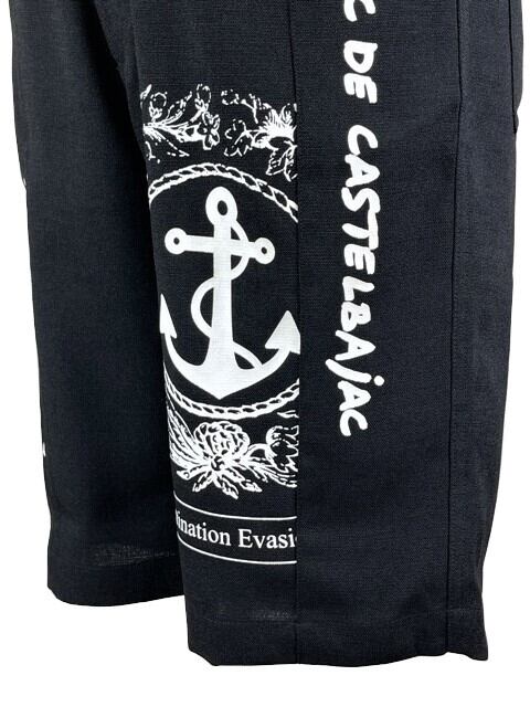 前面に大胆なプリントを施したカステルバジャック(CASTELBAJAC)ハーフパンツ。