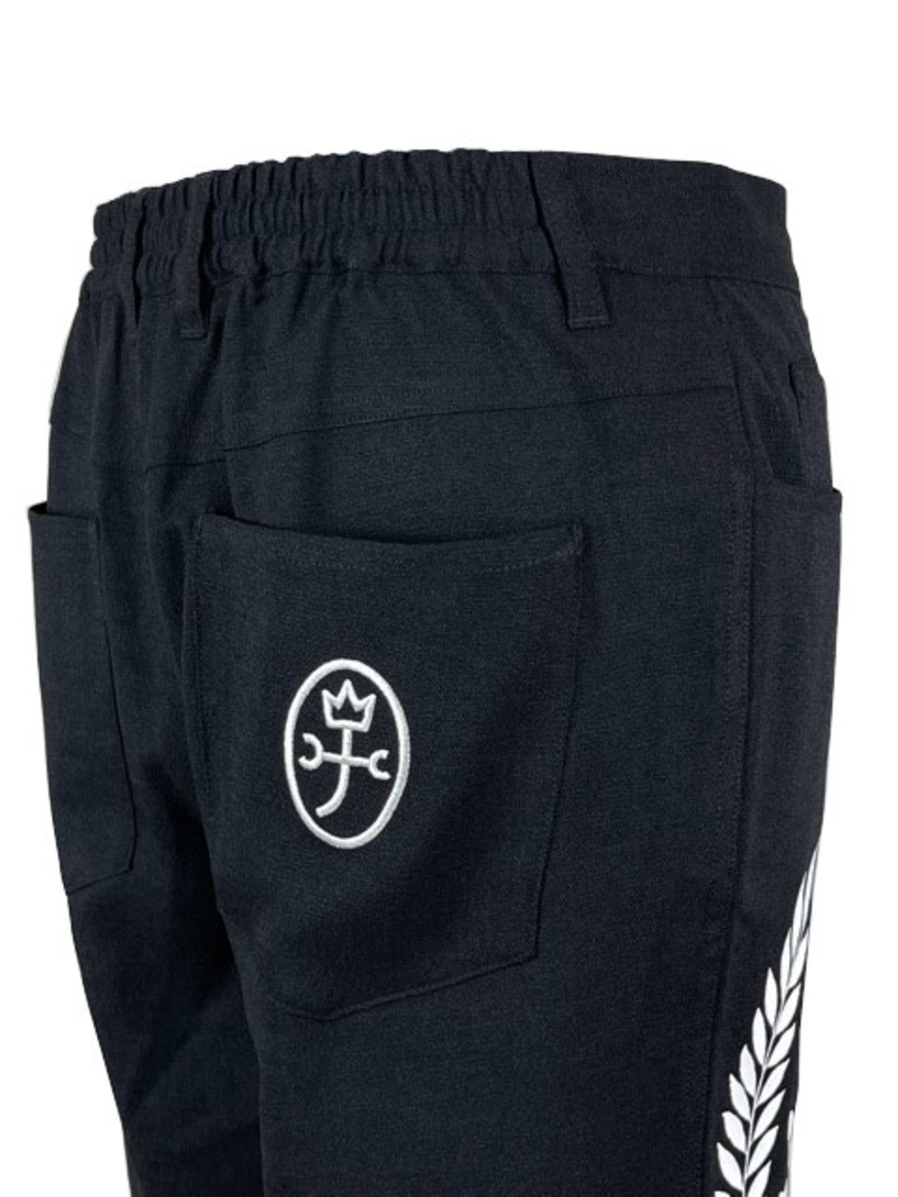ウエスト部分はゴム伸縮機能と紐調節機能を持ち合わせています。