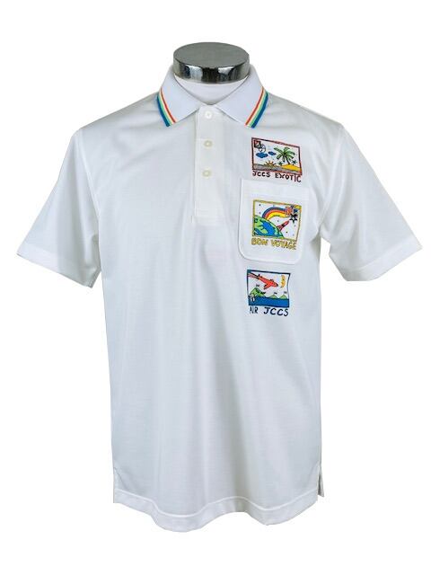 吸汗・速乾性に優れ、UVカット加工も施された機能的な生地を使用。 サラサラとした肌触りで軽い着心地です。ゴルフなどスポーツウエアーとしてもおすすめの半袖ポロシャツです!!襟の裏側はカラフルポップな 夏のリゾートをイメージしたプリント入り。