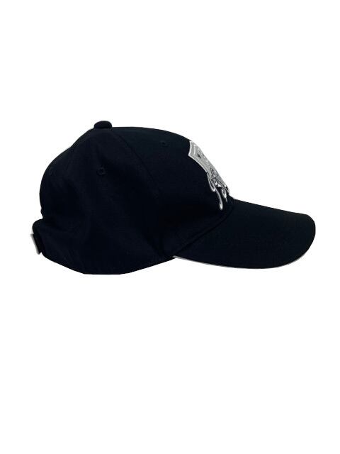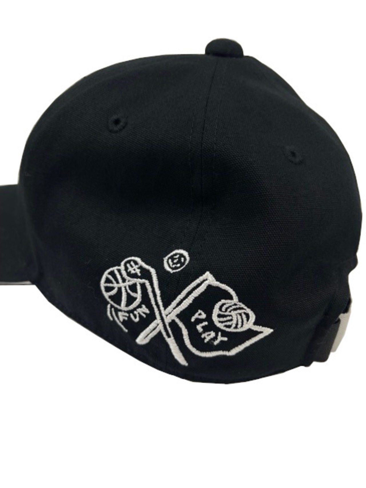 クラウン部分のワッペンとサイドのデザイン刺繍がポイントです。