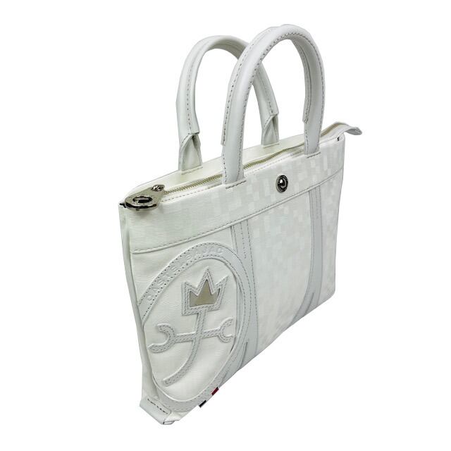 本体生地には角度によってキラキラと光沢を帯びるPVCを採用。付属には牛革を使用。クラウン部分にシルバーの金具を使用した家紋がアクセントに。全面の帯はエッフェル塔をモチーフにし遊び心をプラス。高級感あるオシャレなデザインでイバリの効いたファッションにぴったりなメイドインジャパンのアイテムです。B5サイズ対応でタウンユースやビジネスユースにも便利。仕分けも行えるポケット配置で使い勝手良さも考慮。