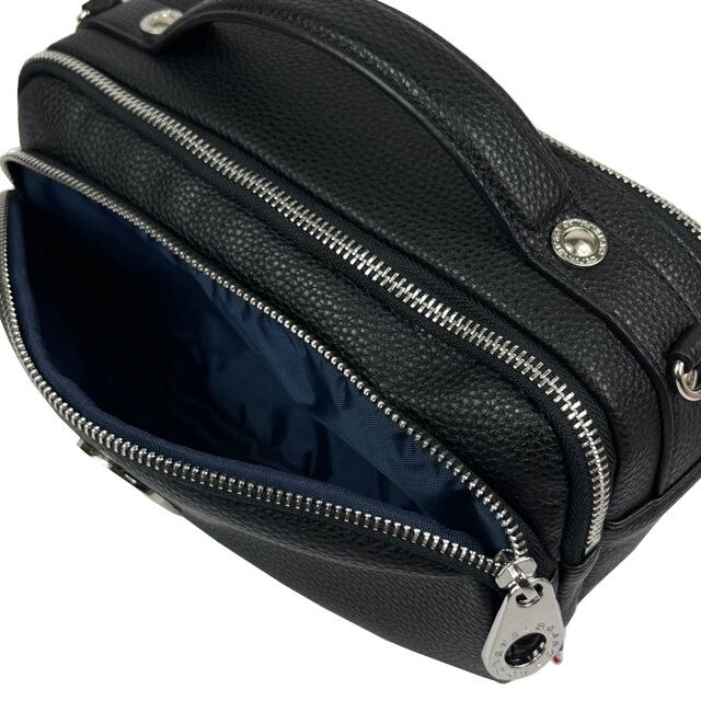 コンパクトながら長財布も収納可能で街歩きに便利。仕分けも行えるポケット配置で使い勝手良さも考慮。ショルダーバッグ、手持ちとして使える2WAY仕様のミニショルダーバッグです。背面ファスナーポケットがメイン収納となります。
