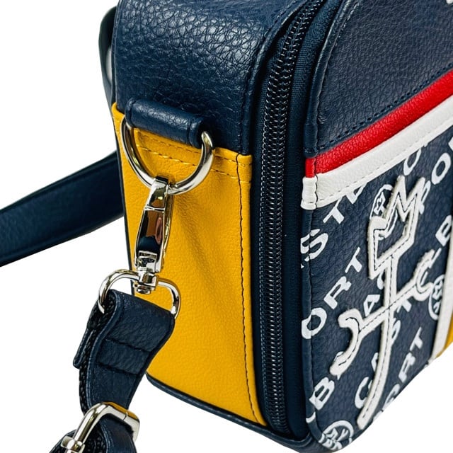 ロゴプリントや配色使いがお洒落なカステルバジャック(CASTELBAJAC)ボックス型2WAYバッグ。ソフトな合皮素材を使用しています。
