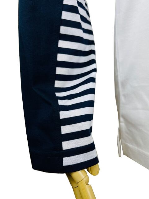 袖は、カラー切替とボーダー柄になっていてお洒落な仕上がりです。便利で嬉しい胸ポケット付き♪