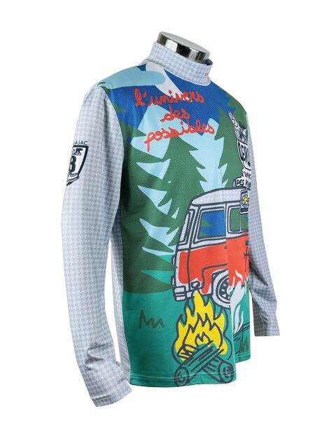 POPでバジャックワールド全開の楽しいデザインです。袖は、さりげなくボーダー切替です。