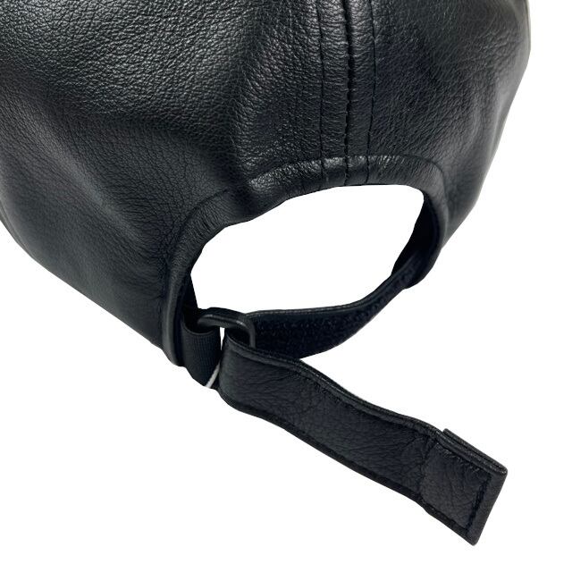ロゴの刺繍とアップリケがポイントの高級レザーキャップ。