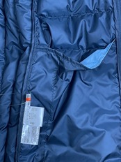 家紋・ロゴプリントを全面に配した軽量ダウンベスト。