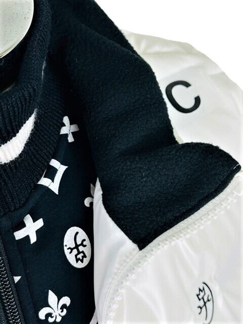 エンボス部分にプリントも施したテクニックの高いダウンベストです。