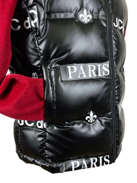 エンボス部分にプリントも施したテクニックの高いダウンベストです。