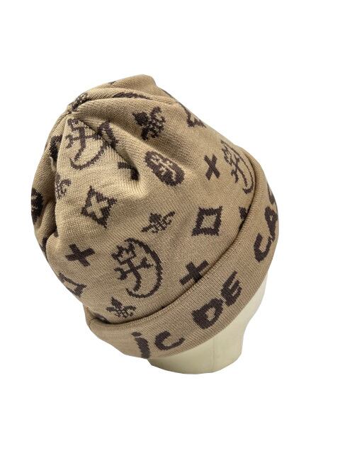 ジャガードロゴやKAMONマークのモノグラム柄が目を惹くニットキャップ。