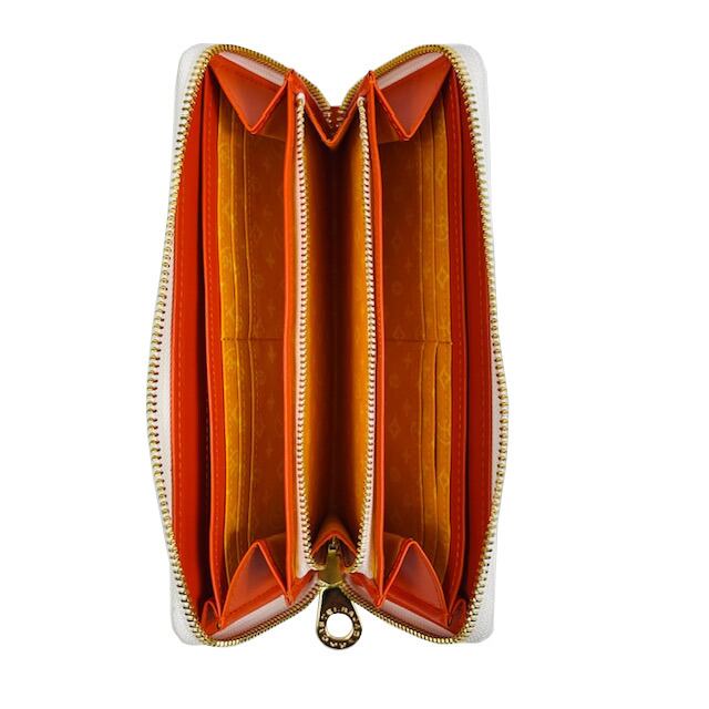 内装にはオレンジの革とイエローのモノグラム柄がデザインされています。